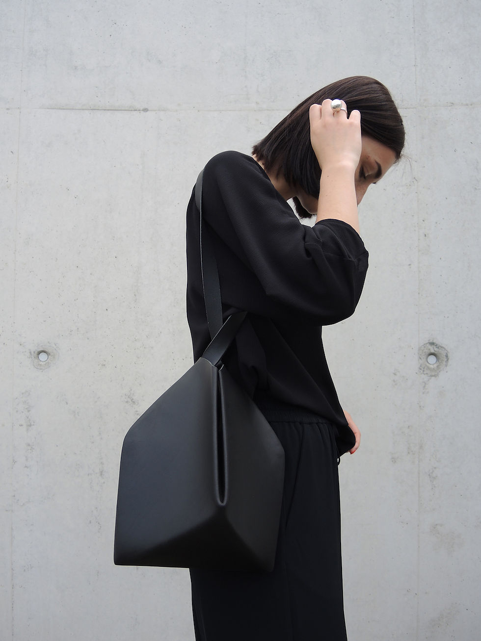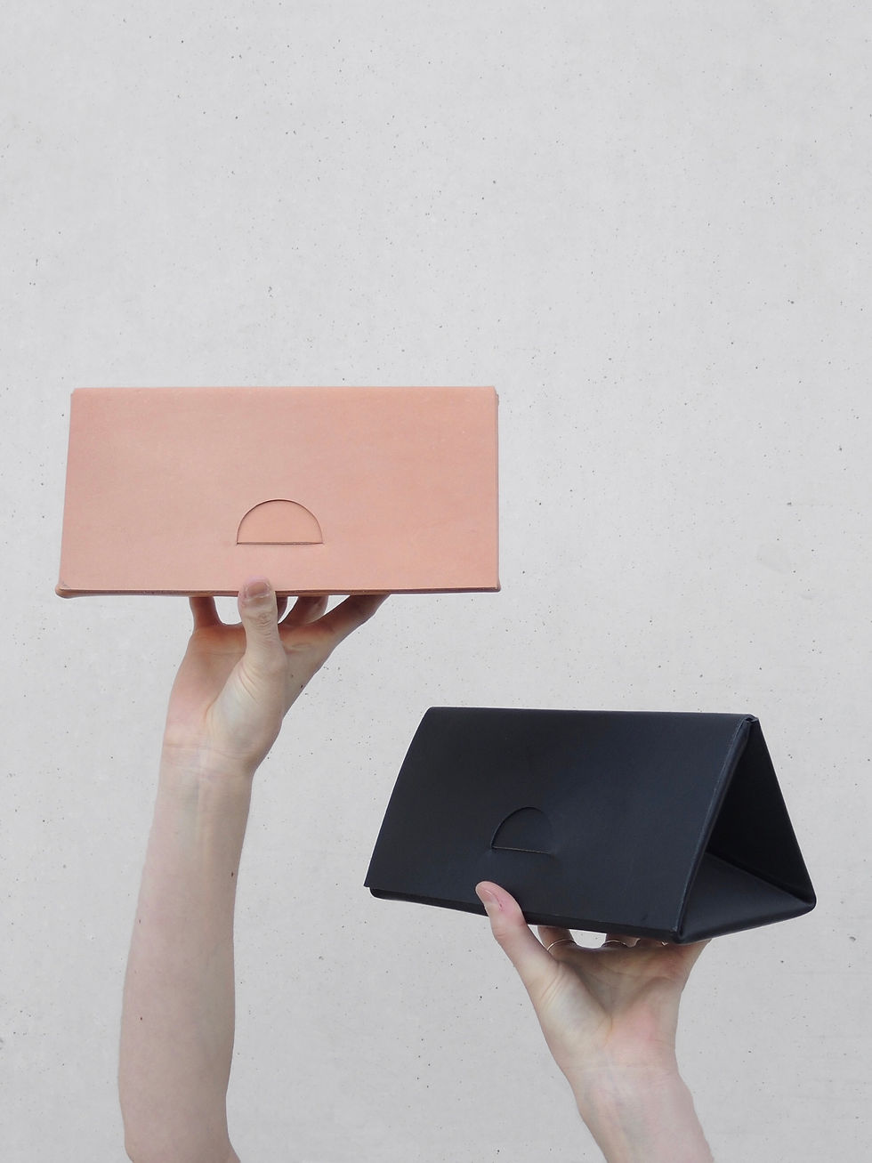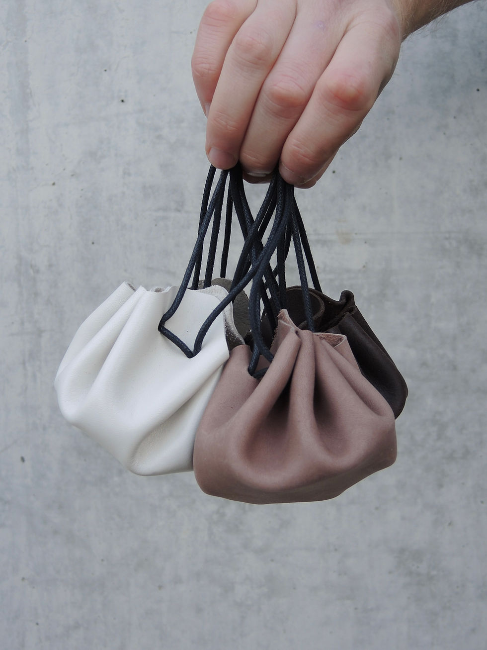 This collection emerged from a practice-oriented research, exploring the possibilities and limitations of zero waste within the design and production process of a handbag. Through cutting and pleating techniques, vegetable-tanned leather is transformed into a three-dimensional, functional form. By keeping the material as intact as possible, the handbag can be easily disassembled and reused after its life cycle.